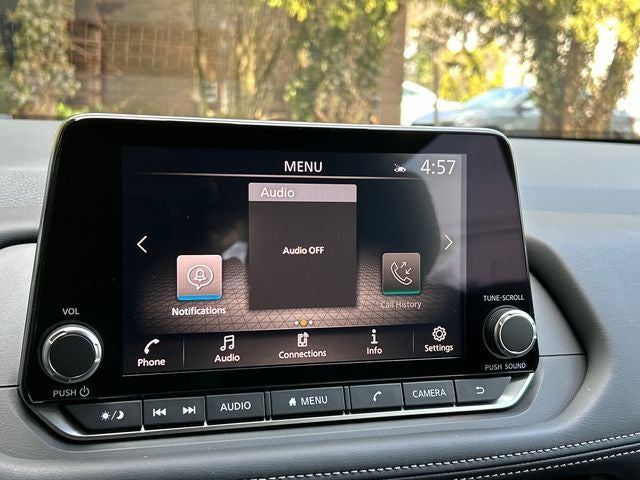 - Radio: AM/FM NissanConnect -inc: 6 speakers plus 2 tweeters, Apple CarPlay, Android Auto, 8" color touch screen display, Bluetooth®, 2 front USB type-C, Wi-Fi hotspot and NissanConnect Services powered by SiriusXM