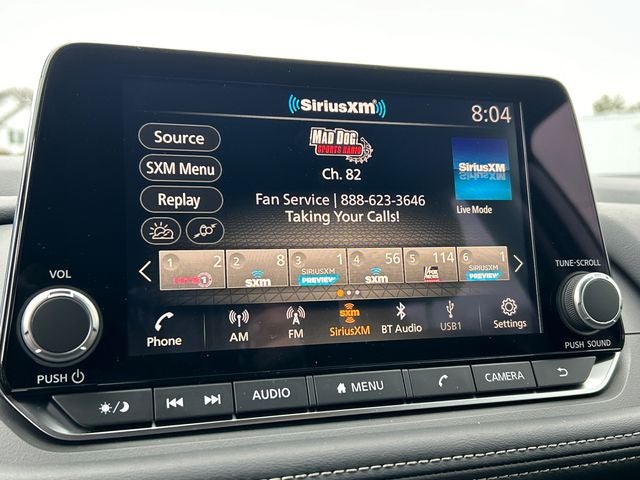 - Radio: AM/FM NissanConnect -inc: 6 speakers plus 2 tweeters, Apple CarPlay, Android Auto, 8" color touch screen display, Bluetooth®, 2 front USB type-C, Wi-Fi hotspot and NissanConnect Services powered by SiriusXM